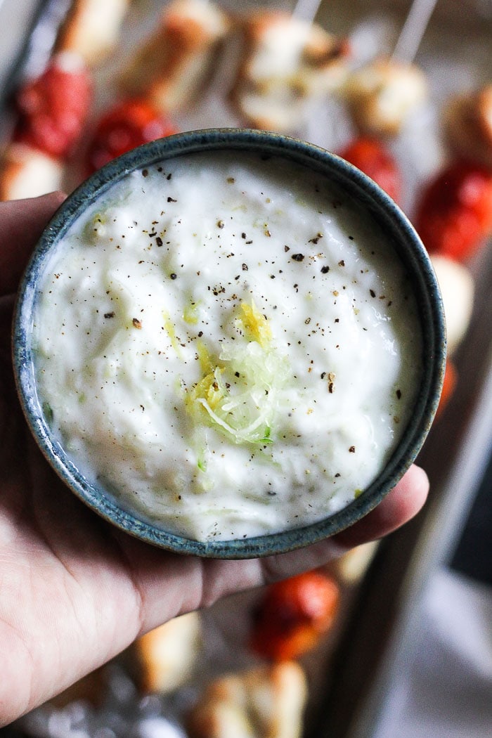 - Right sauce or dip. In this recipe I used yogurt based refreshing dip – that also can be used as a spread for pita!