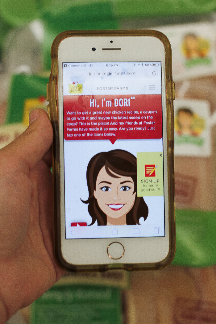 Scan the new DORI™ QR code for exclusive coupons, hundreds of original recipes using Foster Farms chicken, a map of Foster Farms’ local California and Pacific Northwest chicken ranches, savings, and more. How great and time saving is that, guys!