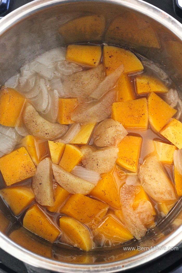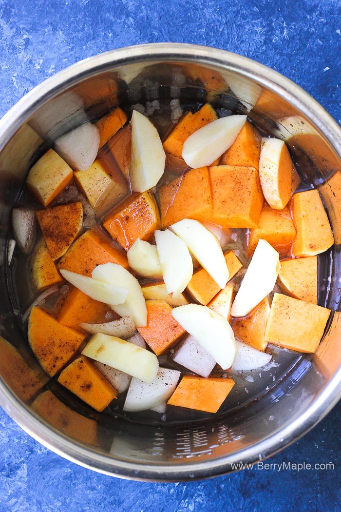 Butternut squash is the king (queen?) of this creamy soup. Pick a medium size squash so it will easily fit into your Instant Pot